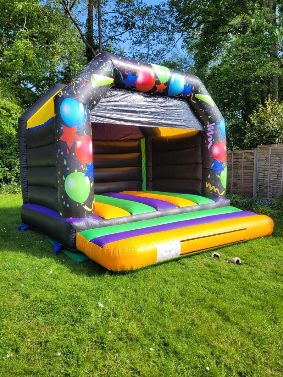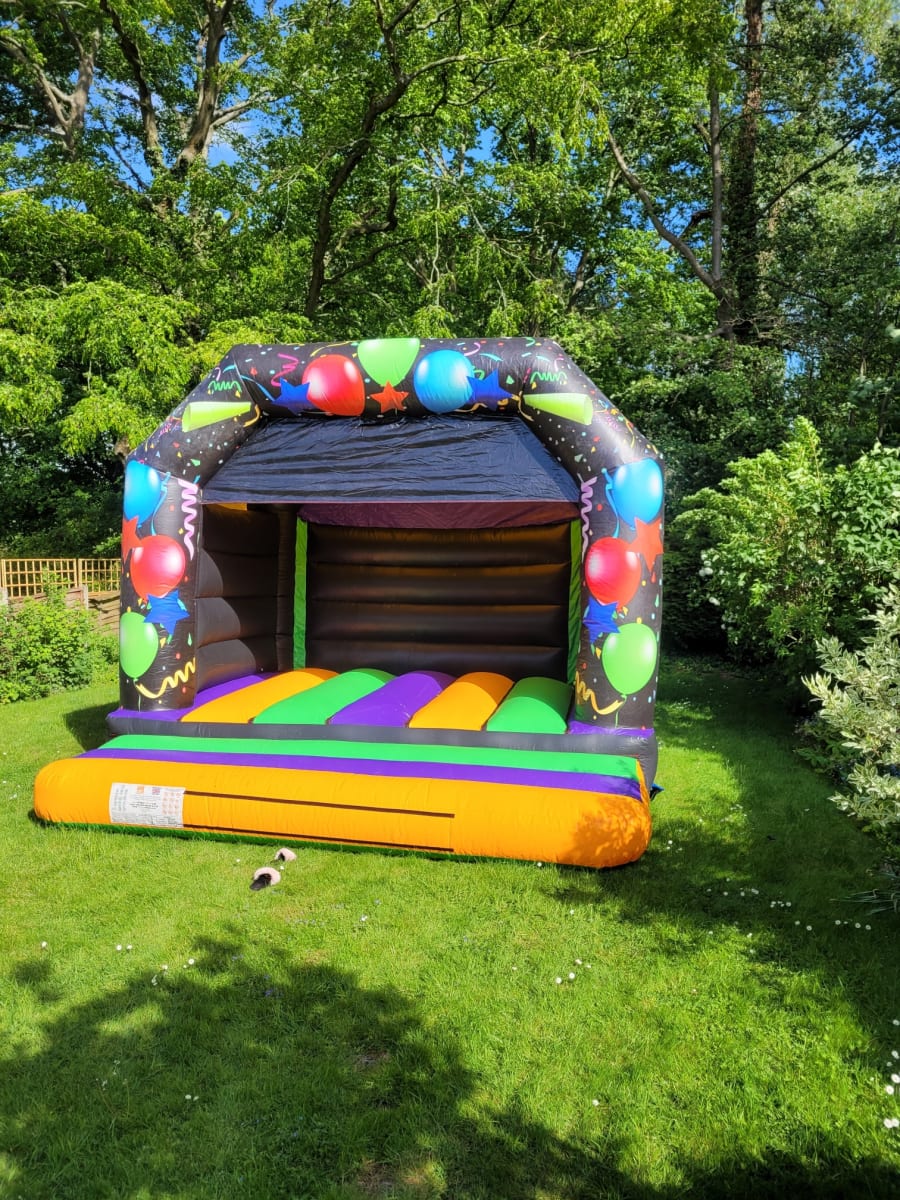 This bouncy castle is built with a deeper bed and higher walls. its suitable for both children and adult use. its much higher than regular castles. it comes with a neutral balloon party theme.
